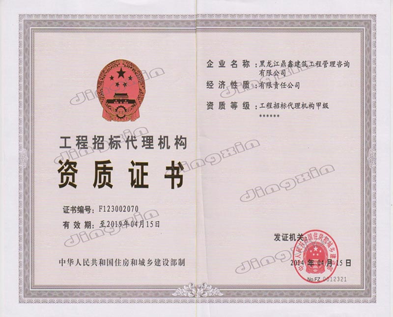 黑龍江鼎鑫建筑工程管理咨詢有限公司成立于2005年,注冊資金400萬元。具備中華人民共和國住房和城鄉(xiāng)建設(shè)部批準的工程招標代理機構(gòu)資格、中華人民共和國財政部批準的政府采購招標代理機構(gòu)資格、黑龍江省商務(wù)廳批準的機電產(chǎn)品國際招標代理機構(gòu)資格、中華人民共和國住房和城鄉(xiāng)建設(shè)部批準的工程造價咨詢甲級資質(zhì)、黑龍江省住房和城鄉(xiāng)建設(shè)廳批準的房屋建筑工程監(jiān)理乙級(市政公用工程監(jiān)理乙級資質(zhì))。主要從事建設(shè)工程及政府采購招標、造價咨詢、工程監(jiān)理、項目管理等業(yè)務(wù)。